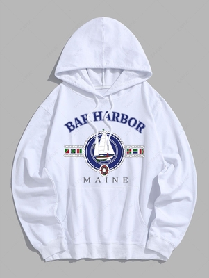 BAR HARBOR And Sailboat Graphic Pattern Pullover Hoodie L White