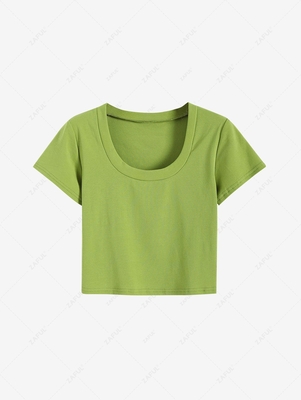 Zaful Style: Basic, Cute Occasions: Daily Shirt Length: Crop Top Collar: Scoop Collar Sleeves Length: Short Sleeves Fit Type: Slim