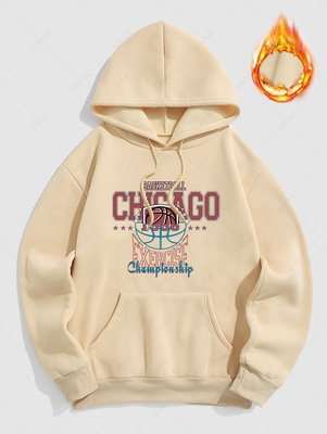 Basketball Chicago Pattern Thermal Lined Hooded 2xl Light Coffee