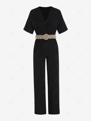 Zaful Style: Sexy Occasion: Party, Semi Formal Fit Type: Loose Length: Normal Collar-line: Plunging Collar Sleeve Type: Batwing Sleeve Sleeves Length: Short Sleeves Types: Wide Leg Jumpsuit Material: Cotton, Polyester Pattern Type: Solid With Belt: Yes Material Stretch: No Stretch Season: Fall, Summer