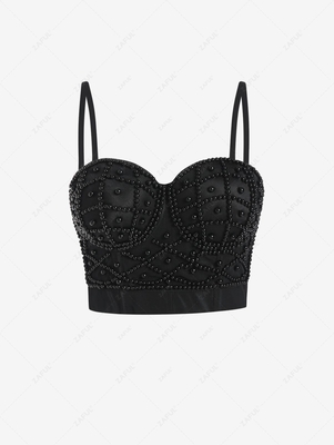 Beaded Faux Pearls Cupped Underwire Cami Top S Black