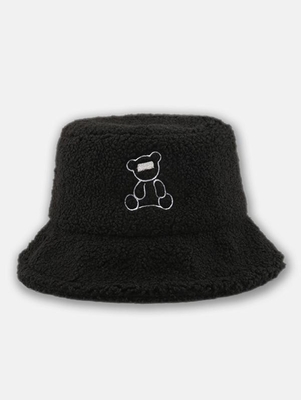 Bear Embroidered Fuzzy Faux Shearling Bucket Hat