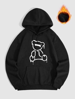 Bear Pattern Warm Thermal Fleece-lined Hoodie M Black