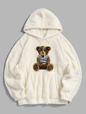 Bear Terry Embroidered Pullover Fluffy Teddy Hoodie S White