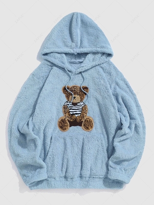 Bear Terry Embroidered Pullover Fluffy Teddy Hoodie Xxl Light Blue
