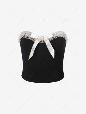 Zaful Style: Cute Shirt Length: Short Collar: Strapless Material: Cotton, Polyester Material Stretch: Slight Stretch Thickness: Standard Pattern Type: Others Decoration: Bowknot, Lace Seasons: Summer Weight: 0.1250kg Package: 1 x Top