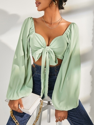 Material: Polyester Material Stretch: No Stretch Sleeves Length: Full Sleeve Type: Puff Sleeve Pattern Type: Solid Color Decoration: Bowknot Seasons: Fall, Spring, Summer Weight: 0.2400kg
