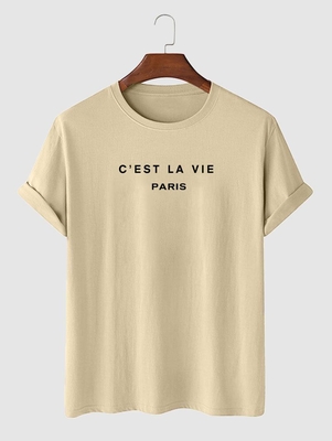 C'EST LA VIE Letter Printed Casual T-shirt M Light Coffee