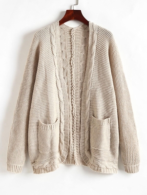 Zaful Detailed with a chunky cable knit, the cardigan is fitted with two pocket patches at the front & that's really all it needs. Type: Cardigans Occasions: Daily Style: Fashion Fit Type: Loose Length: Regular Collar: Collarless Sleeves Length: Full