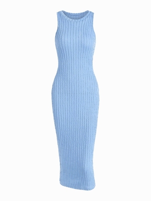 Cable Knit Sleeveless Slinky Midi Dress M Light Blue