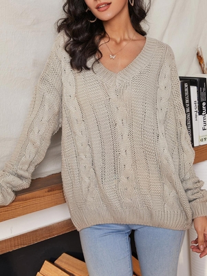 Zaful Knitted with a cable-knit design, it's woven with a V-collarline and dropped shoulders, making it perfect for wearing solo or layering with shirts underneath come cooler weather. Type: Pullovers Occasions: Daily Style: Fashion Fit Type: Loose Length: Regular Collar: V-Collar Sleeve Type: Drop