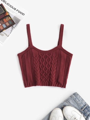 Cable Pointelle Knit Crop Tank Top M Deep Red