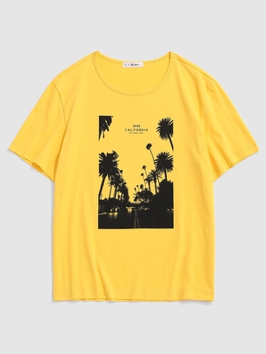 Zaful This t-shirt is casual with its classic and understated cut, is the epitome of casual style with its simple design. The California palm tree photographic print on the front makes it a unique, easy-to-style piece and goes perfectly with any outfit for a chic look. Style: Casual, Streetwear Mate