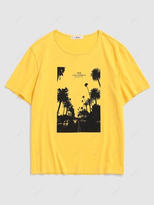 Zaful This t-shirt is casual with its classic & understated cut, is the epitome of casual style with its simple design. The California palm tree photographic print on the front makes it a unique, easy-to-style piece & goes perfectly with any outfit for a chic look. Style: Casual, Streetwear Mate