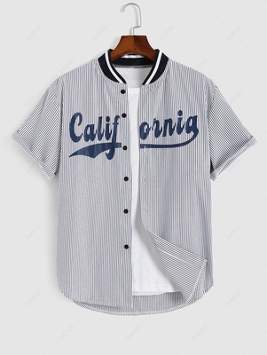 Zaful Shirts Type: Casual Shirts Style: Casual Occasions: Daily Fit Type: Loose Shirt Length: Regular Sleeves Length: Short Collar: Stand Collar Material: Cotton, Polyester Material Stretch: No Stretch Pattern: Letter, Striped Season: Summer Weight: 0.1600kg Package: 1 x Shirt