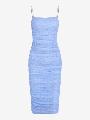 Material: Elastane, Polyester Silhouette: Bodycon Dresses Length: Midi Collar-line: Spaghetti Strap Sleeves Length: Sleeveless Decoration: Mesh, Non-adjustable Shoulder Strap, Ruched Pattern Type: Floral Fit Type: Slim Wa