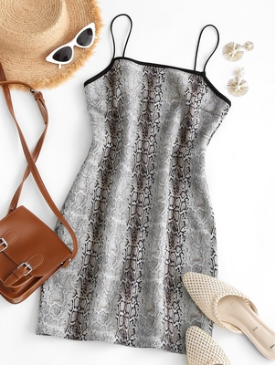 Zaful This cami mini dress is designed with a bold snakeskin print & perfect for a special night out. Featuring a sleek formfitting silhouette, it pairs easily with sneakers & a denim jacket for those cooler-weather days of the week. Style: Sexy Occasion: Club, Cocktail & Party, Night Out Materia