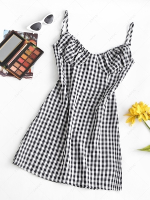 Zaful Add something fresh to your vacation wardrobe with this flattering mini dress, which charms with a classic gingham patterning & an alluring bustier-style bodice. Wear it with the wrap-up sandals & sunnies to complete the look. Style: Brief Occasion: Daily Silhouette: A-Line Collar-line: S