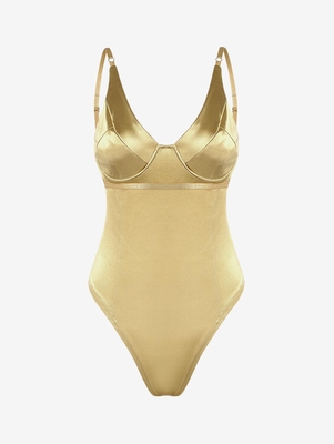Cami Underwire Bustier Silky Bodysuit L Light Coffee