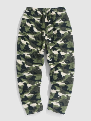 Camouflage Pattern Fuzzy Pants Xxl Deep Green