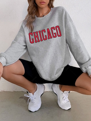 Casual Chicago Print Pullover Sweatshirt L Gray