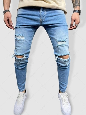 Casual Destroyed Frayed Jeans 34 Light Blue