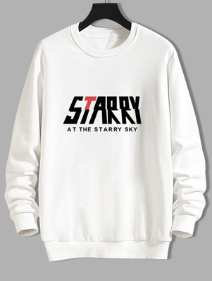 Casual Starry Graphic Crew Neck Sweatshirt L White