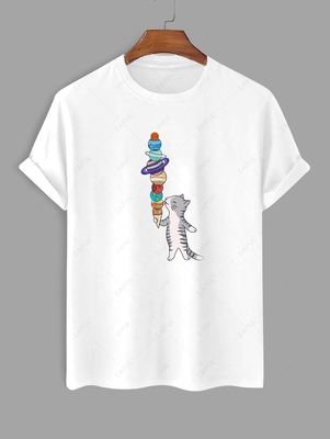 Zaful Style: Casual Fit Type: Regular Fit Shirt Length: Regular Sleeves Length: Short Collar: Crew Collar Material: Cotton Material Stretch: Slight Stretch Pattern Type: Cat, Print Season: Summer Weight: 0.1800kg Package: 1 x T Shirt