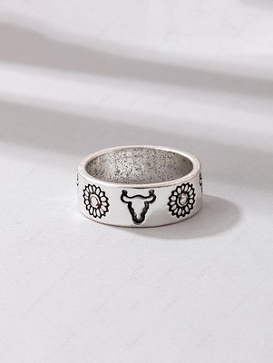 Cattle Floral Patterned Punk Hip Hop Ring