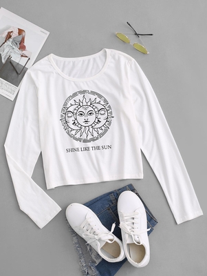 Material: Cotton, Polyester Material Stretch: Slight Stretch Pattern Type: Moon, Sun Seasons: Fall, Spring Weight: 0.2000kg Package: 1 x T-shirt