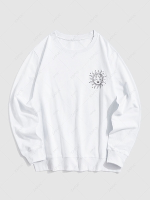 Zaful The creative celestial sun pattern & sunshine letter emphasize the special of this hooded sweatshirt, which is featuring an attached drawstring hood, ribbed cuffs, & a ribbed straight hem adding instant comfort & laid-back style. It easily gets well with your bottom collections for a ch ...