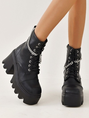 Zaful Gender: For Women Boot Type: Combat Boots Style: Fashion Occasion: Daily Boot Height: Ankle Toe Shape: Round Toe Heel Type: Platform Closure Type: Slip-On Pattern Type: Solid Color Decoration: Chain Outsole Material: Rubber Upper Material: Faux Leather Season: Fall Weight: 1.3398kg Package: 1