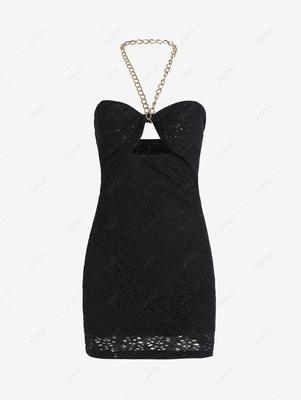 Zaful Cut to a figure-hugging fit, this LBD features a chain halter collarline & skin-baring cutouts & exposed underbust seams. Style: Sexy Occasion: Daily, Going Out