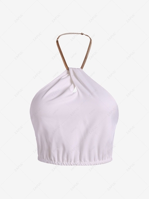 Zaful Add a statement look to your look with this top. Featuring a chain halter collar with a keyhole detail, & an elastic hem, we love this teamed with leather pants & heels for a st&-out look. Style: Sexy Shirt Length: Crop Top Collar: Halter Collar