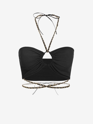 Zaful Do you dare to make a statement this weekend? Featuring chain straps that form a halter collarline and crisscross waist decoration, what's not to love? Keep the look on-trend this weekend and pair it with skinny bottoms and your fave heels. Style: Sexy Shirt Length: Crop Top Collar: Halter Co