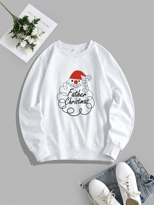 Christmas Santa Claus Print Pullover Sweatshirt Xl White