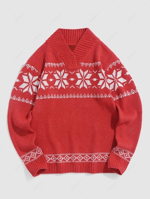 Zaful Type: Pullovers Style: Casual Occasions: Christmas Day Sleeves Length: Long Sleeves Fit Type: Regular Fit Length: Long Collar: Stand Collar Pattern: Snowflake Decoration: Button Material: Acrylic, Cotton, Others, Polyester, Viscose Material Stretch: Slight Stretch Season: Winter Weight: 0.6900kg