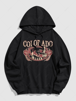 Colorado Mountain Graphic Pattern Pullover Hoodie S Black