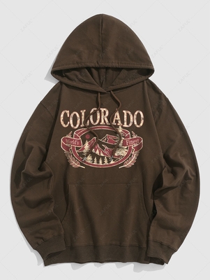 Colorado Mountain Graphic Pattern Pullover Hoodie S Deep Coffee