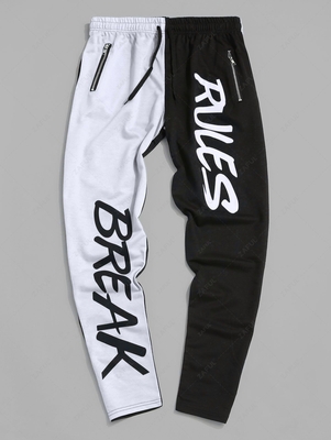 Colorblock Two Tone Break Rules Graphic Drawstring Zip Pocket Pants S