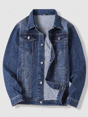 Contrast Stitching Scratch Jean Jacket S Deep Blue