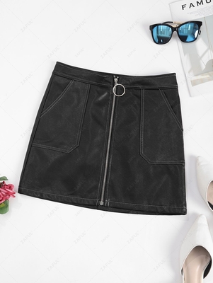 Zaful Offered in soft faux leather & finished with a contrast stitching design & an edgy full-zip front, this sleek miniskirt is an elevated alternative to your usual denim. To complete your look, try adding ballet flats & a silky blouse. Style: Fashion Occasions: Daily Silhouette: A-Line Len