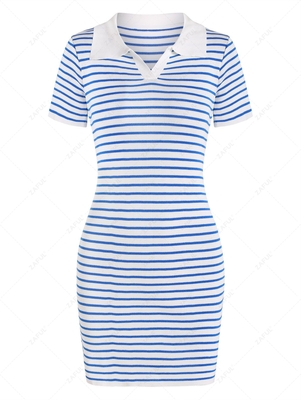 Zaful Crafted in a soft, stretchy knit & featuring a classic, contrast striped pattern, this collared mini dress is a fun refresh of a classic weekend-ready style & works well with all sorts of sandals or sneakers pairings. Style: Brief Occasion: Daily Silhouette: Bodycon Collar-line: Shirt Col