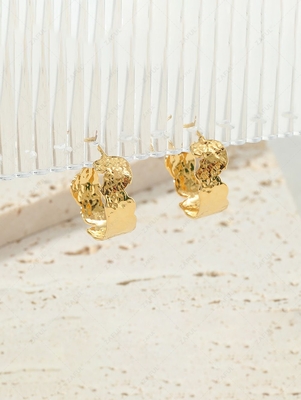 Copper Plated 18K Genuine Gold Irregular Small Hoop Earrings