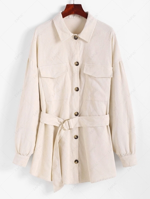 Zaful Embrace casual-cool vibes with this shirt-jacket cut from cozy corduroy fabric in a classic tunic length with full buttons, a pair of flap pockets, slouchy dropped shoulders & a D-ring belt to slim the waist. Style: Casual
