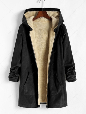 Zaful Clothes Type: Coat Style: Fashion Occasions: Daily Type: Wide-waisted Length: Long Collar: Hooded Sleeves Length: Long Sleeves Closure Type: Zipper Material: Cotton, Polyester Material Type: Corduroy Material Stretch: Slight Stretch Pattern Type: Solid Decoration: Pockets With Belt: No Seasons