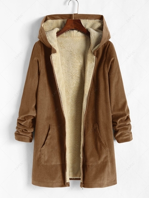 Zaful Clothes Type: Coat Style: Fashion Occasions: Daily Type: Wide-waisted Length: Long Collar: Hooded Sleeves Length: Long Sleeves Closure Type: Zipper Material: Cotton, Polyester Material Type: Corduroy Material Stretch: Slight Stretch Pattern Type: Solid Decoration: Pockets With Belt: No Seasons