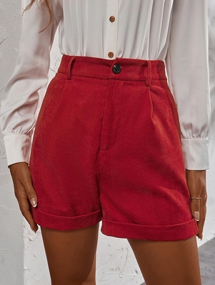 Corduroy Rolled Hem High Waisted Shorts L Red