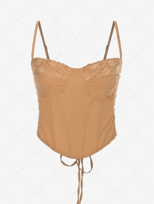 Corset Boning Bustier Swiss Dot Cami Top S Light Coffee
