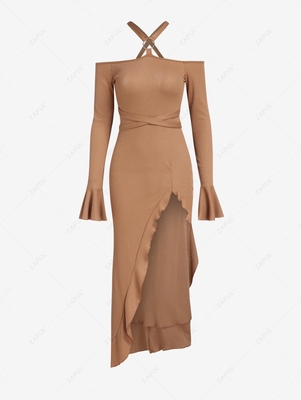 Zaful Style: Elegant, Sexy Occasion: Date Night, Going Out, Night Out Silhouette: Asymmetrical Collar-line: Straps Sleeve Type: Cold Shoulder Sleeves Length: Long Sleeves Dresses Length: Midi